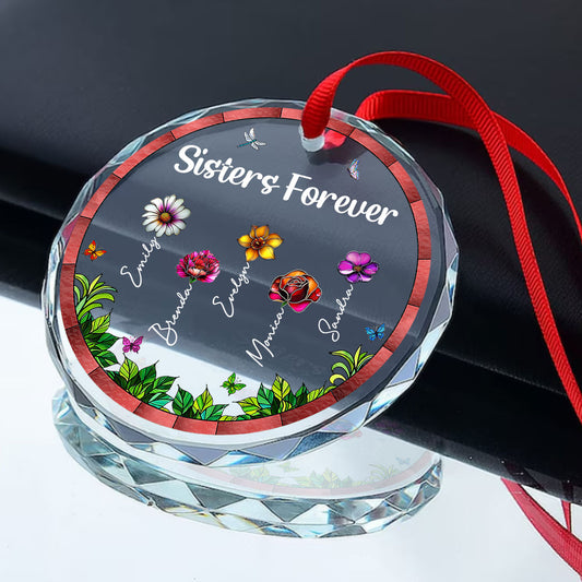 Sisters Forever - Personalized Round Shaped Glass Ornament