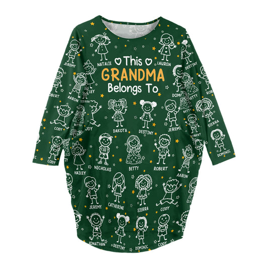 This Grandma Belongs To - Personalized AOP Loose Pocket Oversize T-Shirt Dress