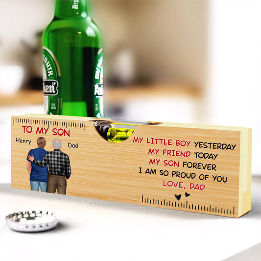 My Son Forever - Personalized Wooden Spirit Level Bottle Opener