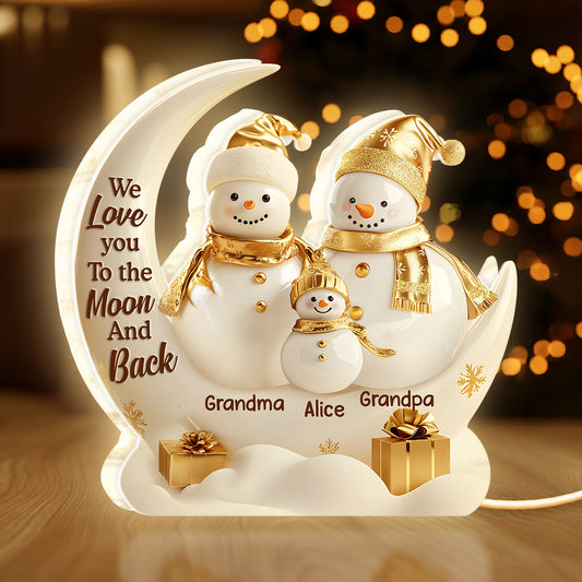 Golden Snowman Grandparents And Grandkid - Personalized Light Box