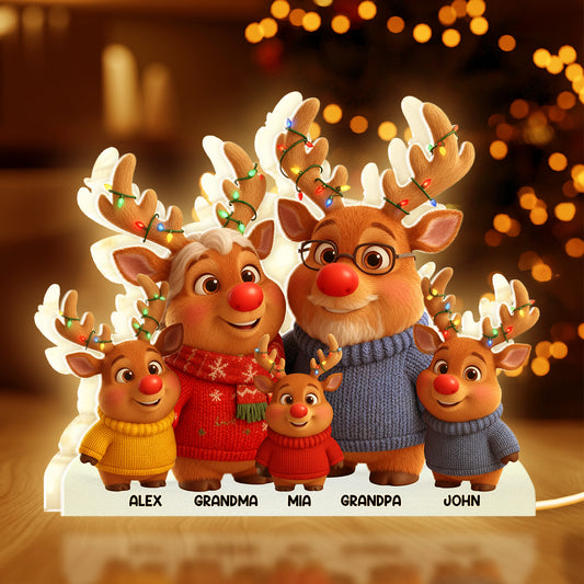 Reindeer Grandparents And Grandkids - Personalized Light Box