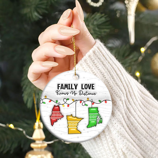 Family Love Knows No Distance - Personalized Round Shaped Ceramic Ornament