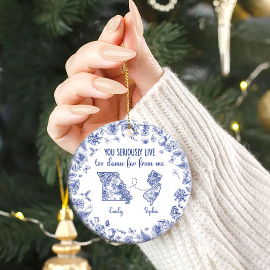 You Seriously Live Too Damn Far From Me Toile De Jouy - Personalized Round Shaped Ceramic Ornament