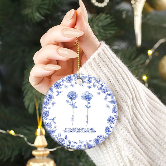 Toile De Jouy Friendship Birth Month Flower - Personalized Round Shaped Ceramic Ornament