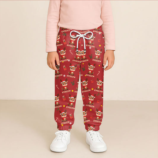 Cute Reindeer Christmas - Personalized Kids Sweatpants