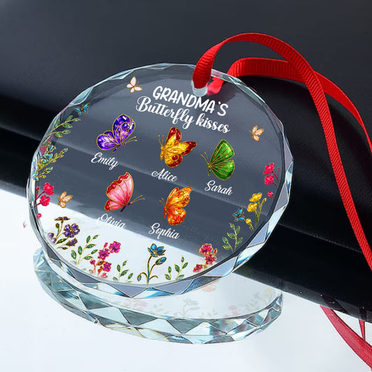 Grandma Kisses - Personalized Round Shaped Glass Ornament