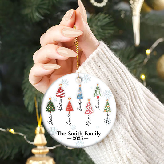 Family Christmas Tree Names - Personalized Round Shaped Ceramic Ornament