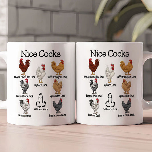 Nice Cocks Funny Rooster Pun - Personalized Ceramic Coffee Mug