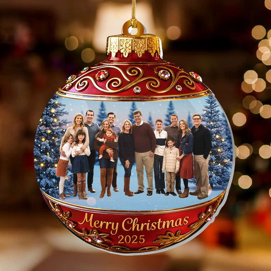 Festive Family Christmas Ball Upload Photo - Personalized 1-Layer Acrylic Ornament