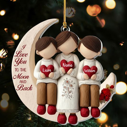 Grandma And Grandkids Moon Love - Personalized 1-Layer Acrylic Ornament