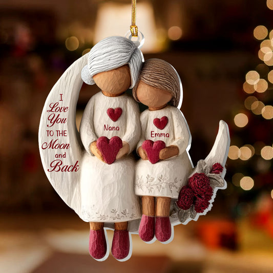 Grandma And Grandchild Moon Love - Personalized 1-Layer Acrylic Ornament
