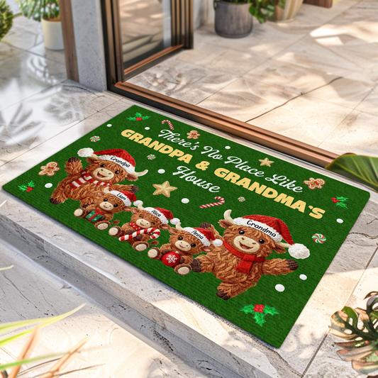 Christmas Grandma Grandkids Highland Cow - Personalized Doormat