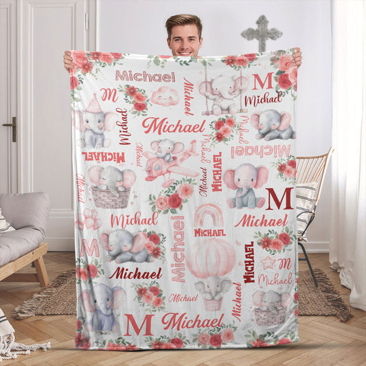 Elephant Love - Personalized Fleece Blanket