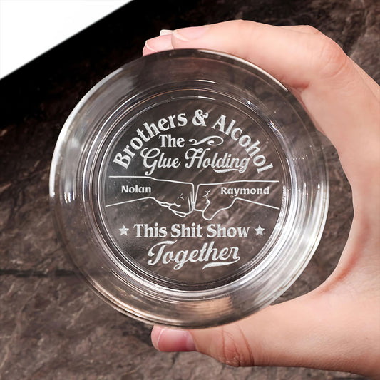 Brothers & Alcohol The Glue Holding This Together - Personalized Engraved Whiskey Glass