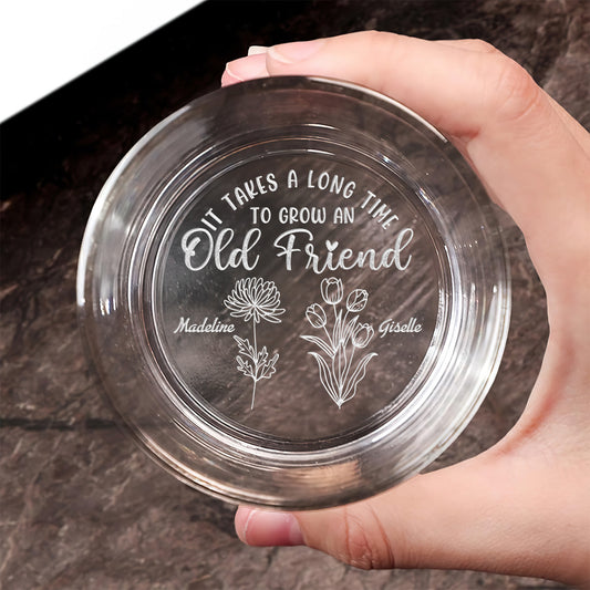 Birth Flower Grow An Old Friend Bestie - Personalized Engraved Whiskey Glass
