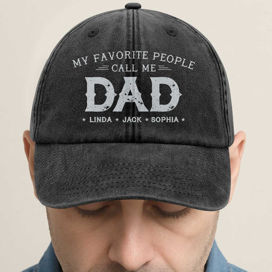 My Favorite People Call Me Papa - Personalized Vintage Washed Denim Cap