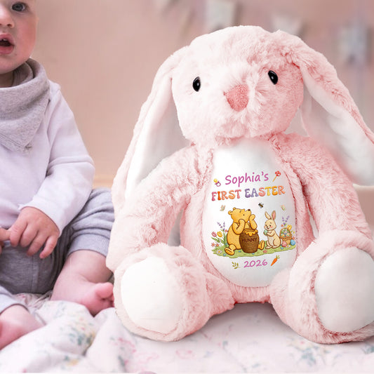 Baby's First Easter With Pooh - Personalized Stuffed Bunny