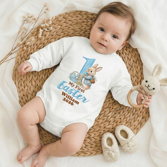 First Easter Baby Long Sleeve Puff Romper - Personalized Baby One-Piece