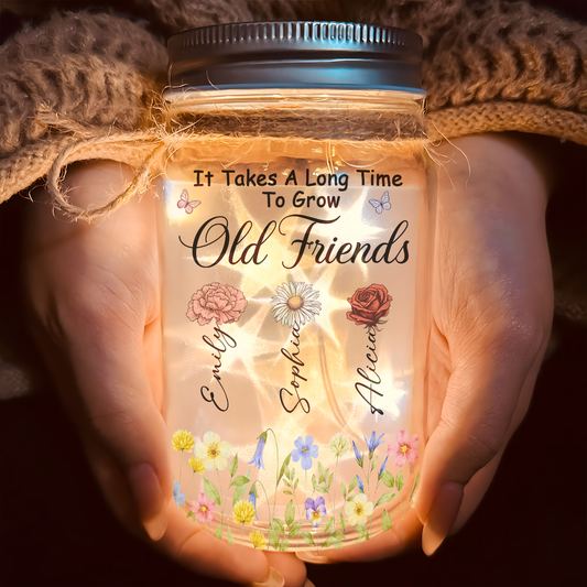 Sisters Besties Are Flowers - Personalized Mason Jar Light