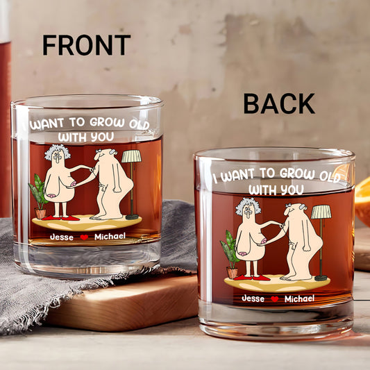 I Want To Grow Old With You - Personalized Round Whiskey Glass