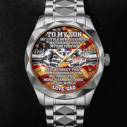 My Little Boy Yesterday, My Friend Today, My Son Forever - Personalized Men's Wrist Watch
