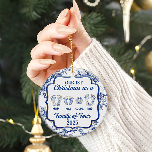First Christmas Family - Personalized Round Shaped Ceramic Ornament