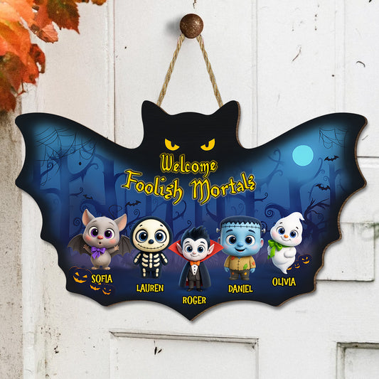 Welcome Foolish Mortals - Personalized Wooden Door Sign