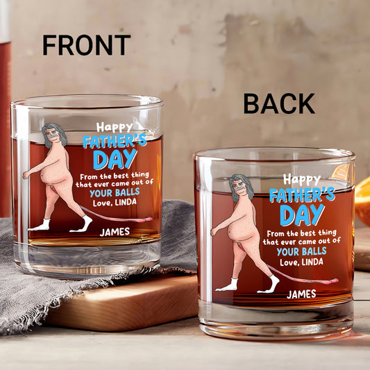 The Best Thing That Ever Came Out Of Your Balls - Personalized Round Whiskey Glass