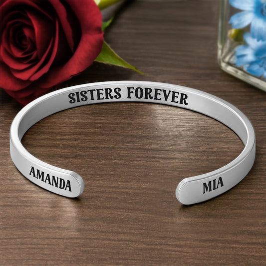 Sister Forever - Personalized Cuff Bangle Bracelet With Box