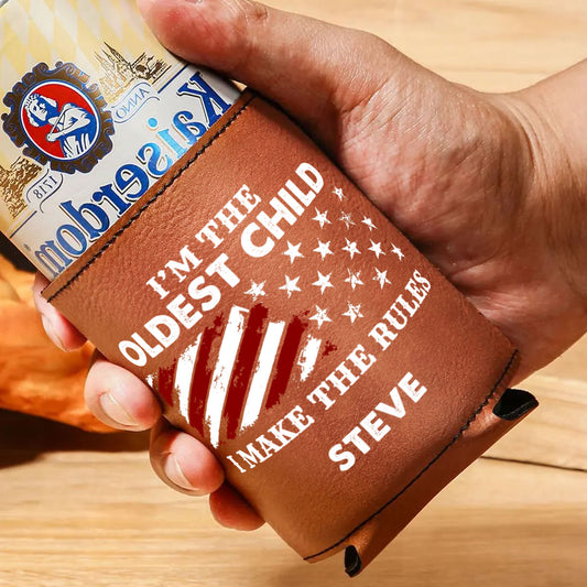 Who Makes The Rules - Personalized Leather Can Cooler