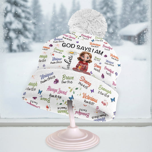 God Says I Am - Personalized Bobble Beanie Hat