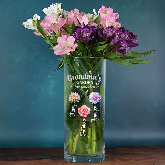 Grandma's Garden Love Grows Here - Personalized Glass Vase