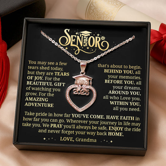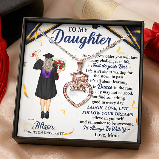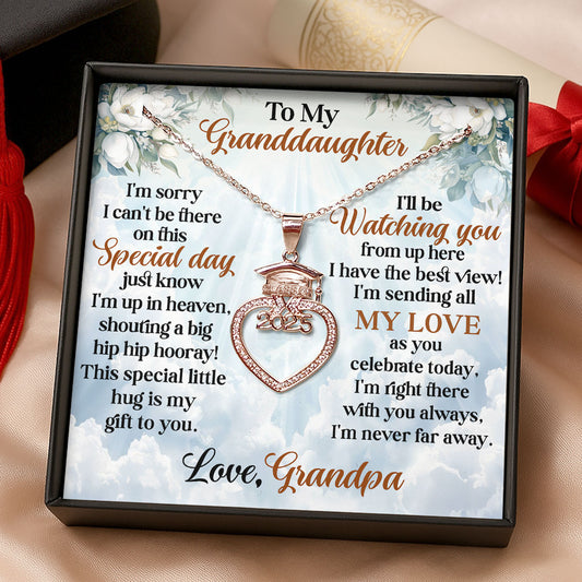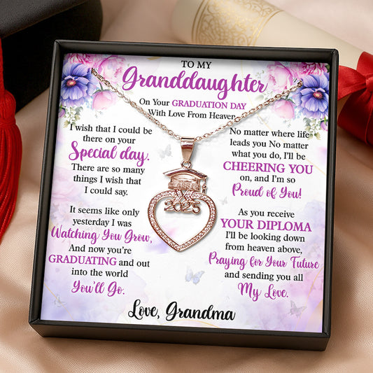 On Your Graduation Day With Love From Heaven - Personalized Grad Cap Heart Necklace With Box&Card