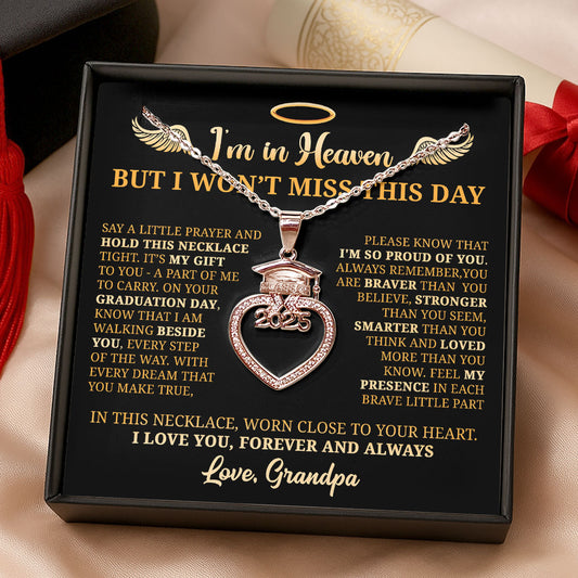 I’m In Heaven But I Won't Miss This Day - Personalized Grad Cap Heart Necklace With Box&Card