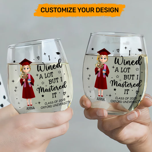 I Wined A Lot But I Mastered It - Personalized Stemless Wine Glass