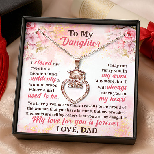 I Will Always Carry You In My Heart - Personalized Grad Cap Heart Necklace With Box&Card