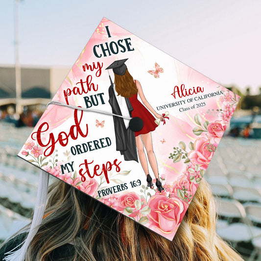 I Chose My Path But God Ordered My Step - Personalized Graduation Cap Topper