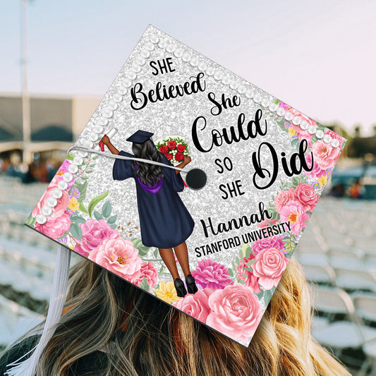 She Believed She Could So She Did - Personalized Graduation Cap Topper