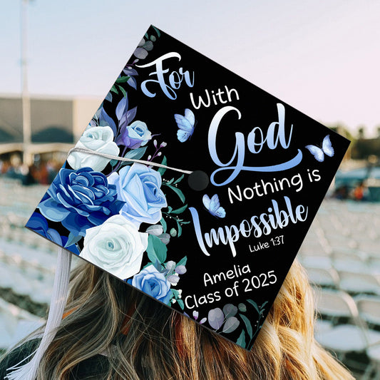 For With God Nothing Is Impossible - Personalized Graduation Cap Topper