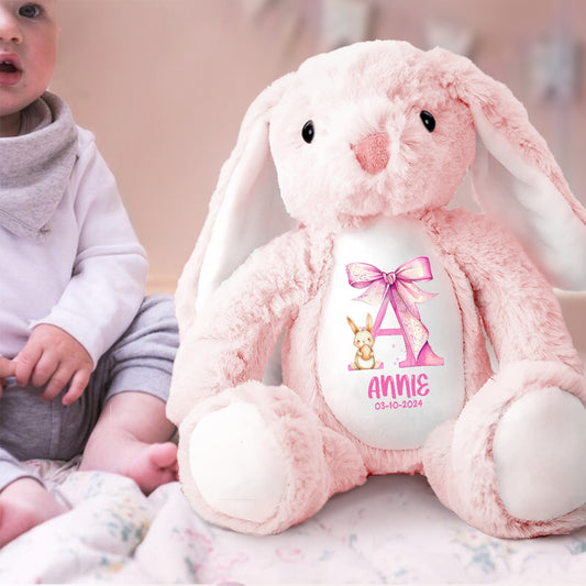 Pink Bow Initial Cute Blush - Personalized Stuffed Bunny
