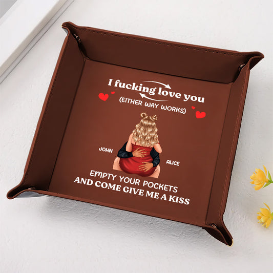 Empty Your Pockets And Come Give Me A Kiss - Personalized Leather Valet Tray