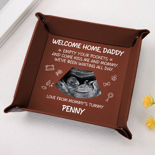 Welcome Home Daddy - Personalized Leather Valet Tray