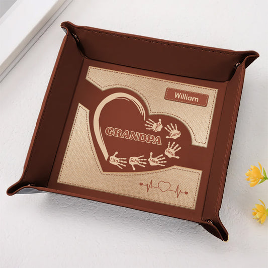 Grandpa Dad And Kids Handprints - Personalized Leather Valet Tray