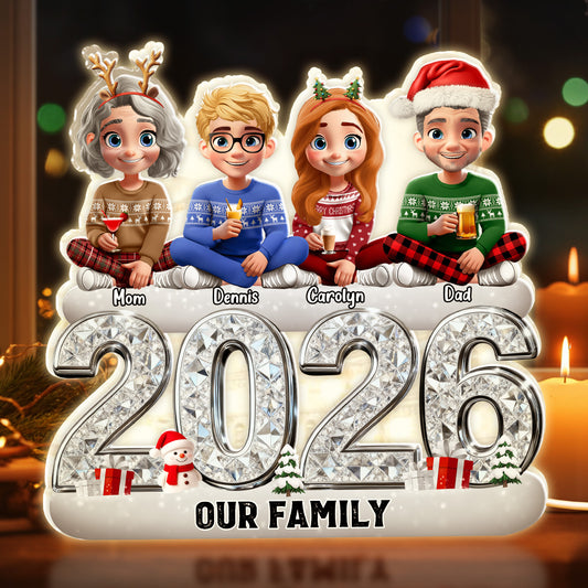Golden Snowman Grandparents And Grandkid - Personalized Light Box