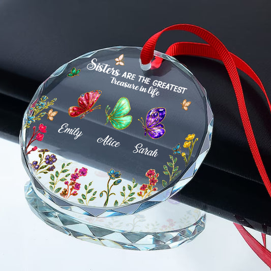 Sisters Are The Greatest Treasure In Life - Personalized Round Shaped Glass Ornament