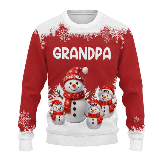 Snowman Grandparents And Grandkids - Personalized Wool Sweater