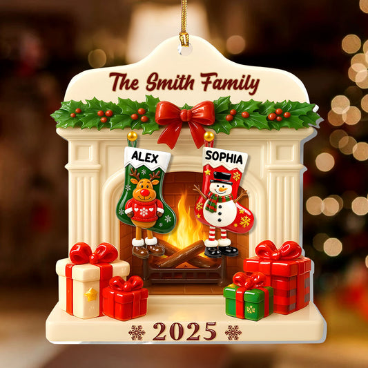 Jolly Stockings Hanging - Personalized 1-Layer Acrylic Ornament