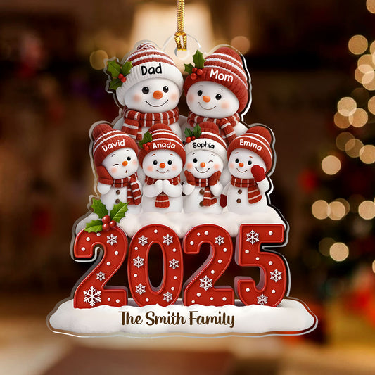 Snowman Family 2025 - Personalized 1-Layer Acrylic Ornament