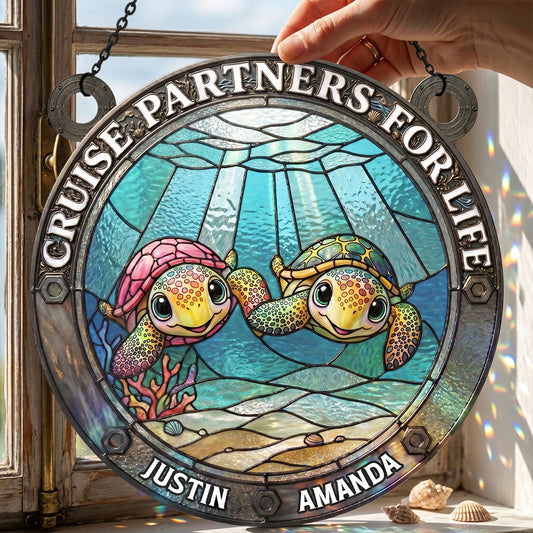 Cruise Partners For Life Sea Turle Couple - Personalized Acrylic Suncatcher