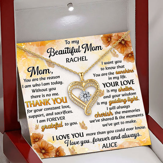 To My Beautiful Mom - Personalized Forever And Always Heart Necklace